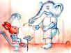 On a shiny Monday morning he was sitting at the window. Suddenly Robert, the Rabbit ran in front of his house and was crying loudly, "Please, help me. Is there anybody to help me? I have a very bad toothache!" Elliot thought, "Hurray! I'm going to be a dentist!" He stopped the rabbit. "Wait a minute! I'll help you!" A few minutes later Elliot said, "Now, that's it!" "Oh, my God! What have you done? You pulled out my good tooth, too. You are a good-for-nothing!" Elliot went home and started crying. |