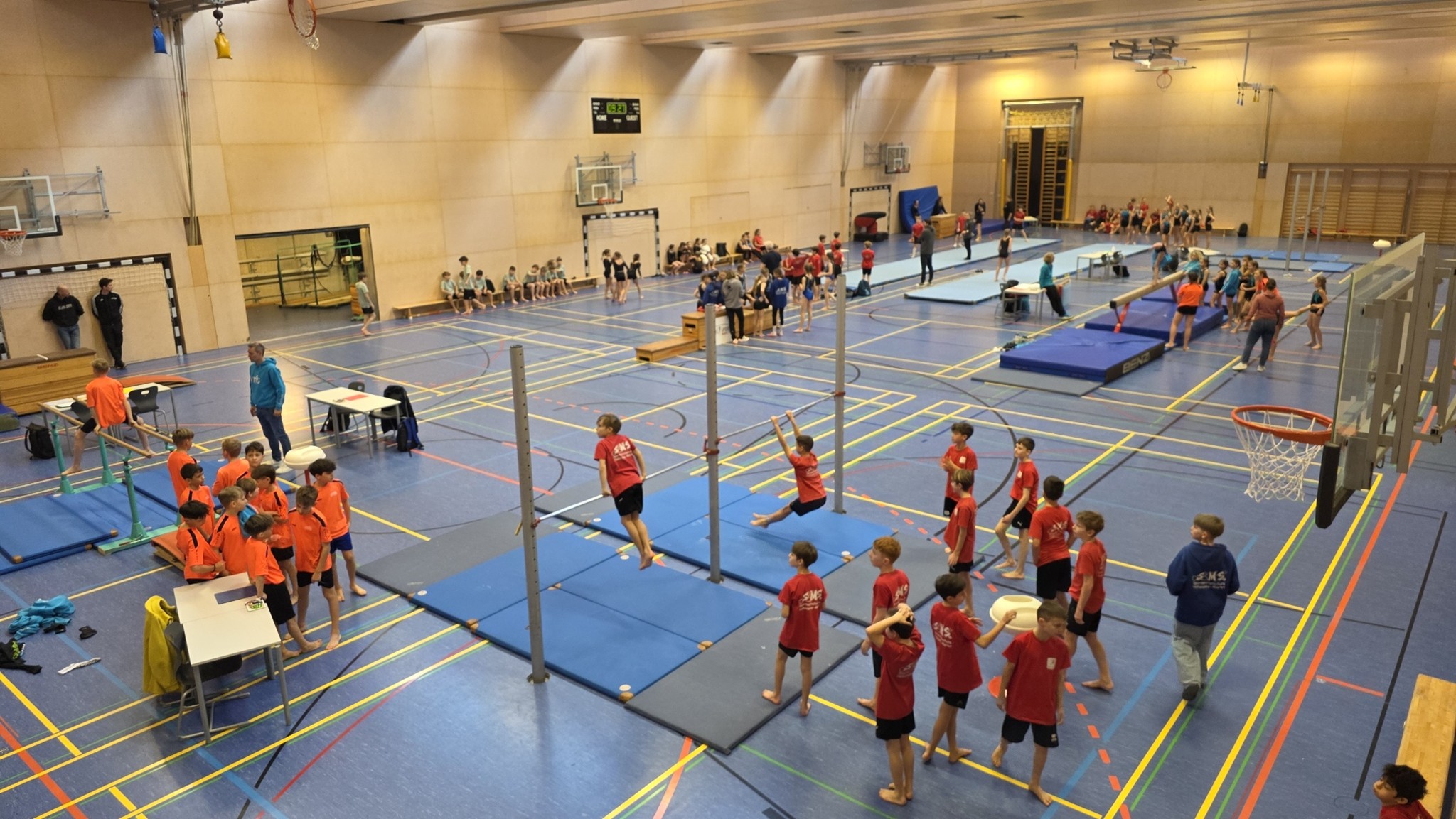 Im Wettkampf an den Geräten Boden, Barren/Baken, Sprung und Reck lag die SMS Hohenems mit fünf Klassensiegen vor Wolfurt mit drei Goldmedaillen. Außerdem sicherten sich die Hohenemser (3a Buben und 4a Mädchen) beide Startplätze für das Bundesfinale am 16. und 17. April in Wolfurt. Bei diesem wichtigsten Wettkampf im österreichischen Turn10-Bewerb der Schulen wird die SMS Wolfurt jedoch auch vertreten sein; die veranstaltende Schule nominierte die Buben und Mädchen der 4a für das Bundesfinale.